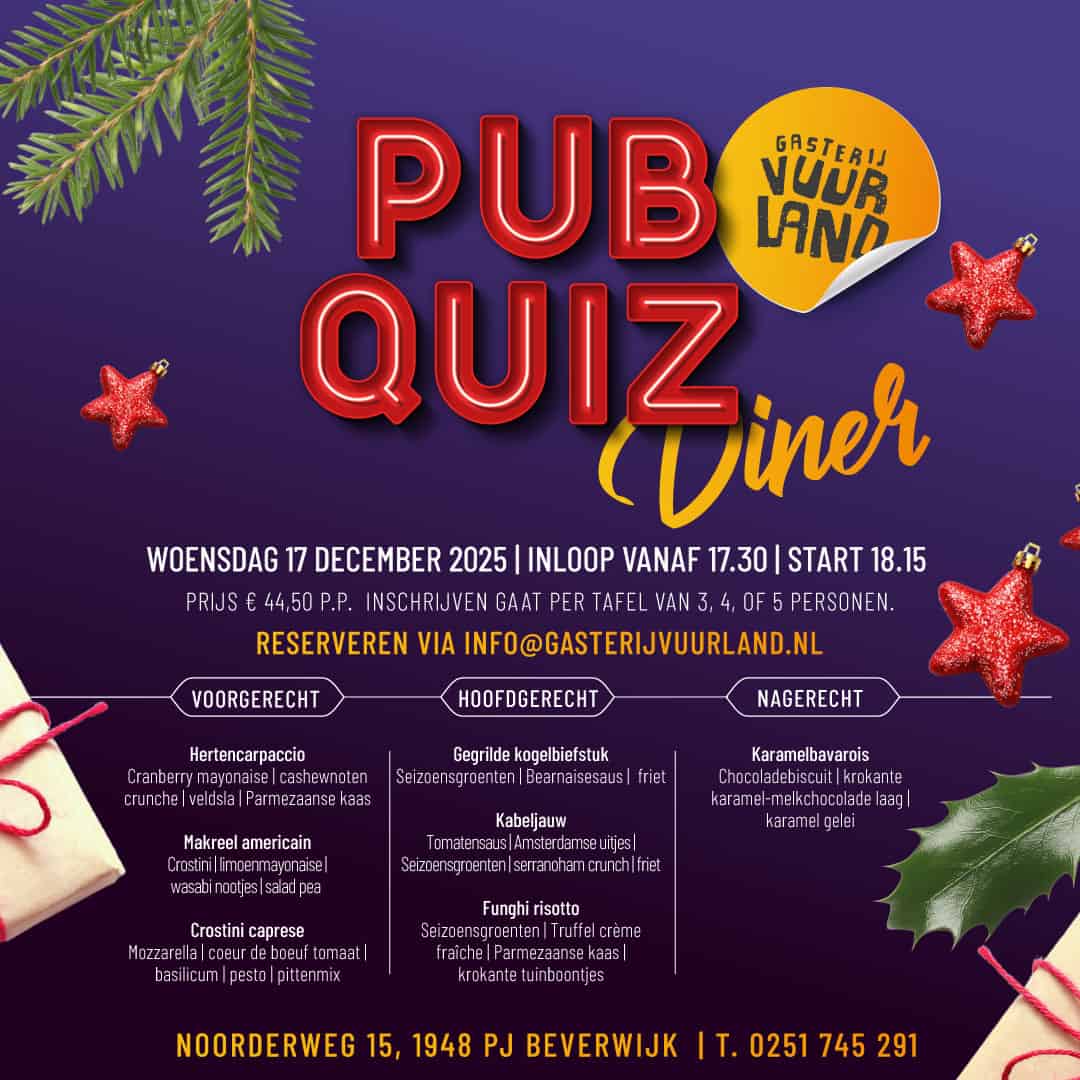 Op woensdag 17 december organiseren we een speciaal Kerst Pubquiz Diner.